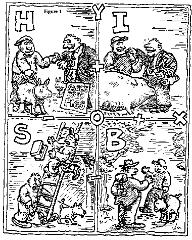Якщо Том виконає певну дію і зазнає втрат, водночас забезпечивши зиск Діку, Том потрапить у область Н – він діяв як нездара. Якщо Том зробить щось, внаслідок чого матиме зиск сам і забезпечить його Діку, він потрапить у область І – Том діяв розумно. Якщо Том зробить щось, що дасть йому зиск за рахунок втрати Діка, він потрапить до області В: Том діяв як бандит. Тупість належить до області S та до всіх позицій на осі “ігрек” нижче від центральної точки О на діаграмі.