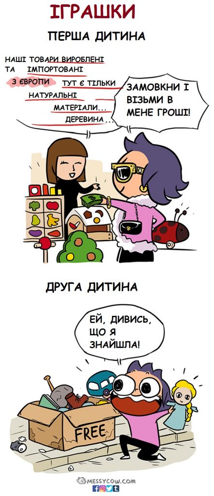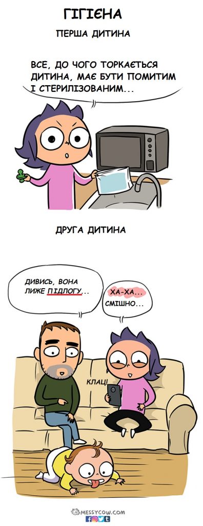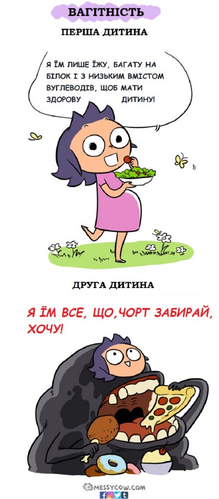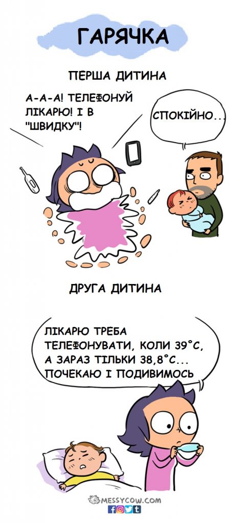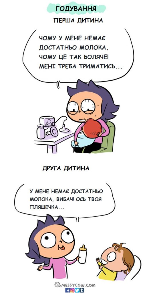 Messycow почалися як імпульс, пояснює ілюстраторка. Різницю від першою і другою дитиною вона відчула так. А що гадаєте ви?