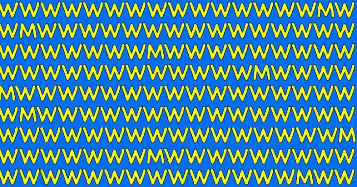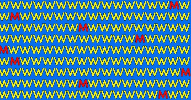 Тут в якості головного інструмента застосовується картинка, на якій серед безлічі букв «W» загубилися кілька букв «М». На перший погляд може здатися, що знайти їх простіше простого, проте це не так з урахуванням того, що ваш зір саме спробує вас обдурити.