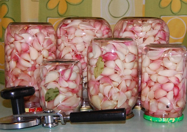 У півлітрову банку щільно складаємо часник і заливаємо все готовим маринадом.
