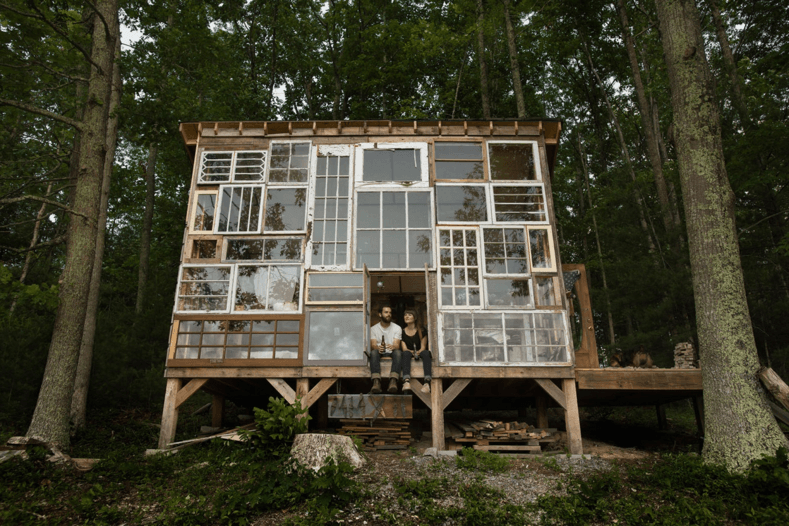 Пара побудувала будинок з віконних рам і тепер живе в лісовій глушині без людей