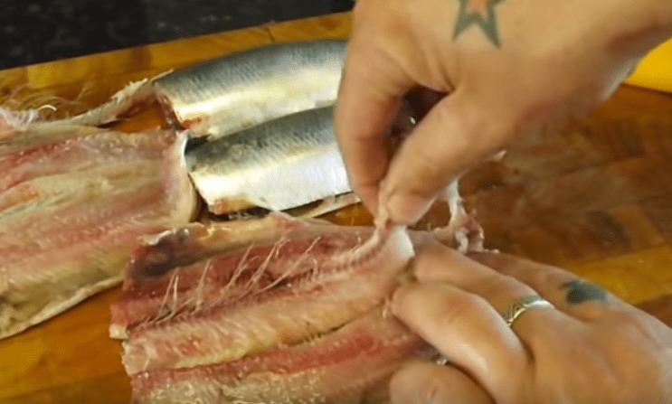 Однією рукою притримуємо оселедець, а іншою тягнемо за хребет. На ньому залишаться всі кістки.