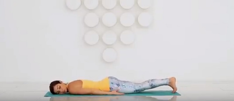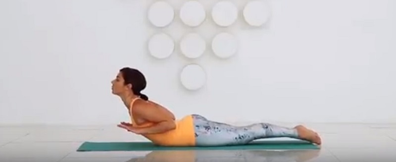 Ляж на живіт обличчям вниз, притискаючись підборіддям до поверхні підлоги. Лобкову кістку щільно притисни до підлоги, ноги зведи разом, руки поклади під плечі долонями вниз.