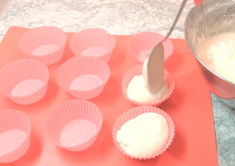 Заповни формочки тістом на 2/3. Розігрій духовку до 200 градусів і випікай кекси 20-25 хвилин.