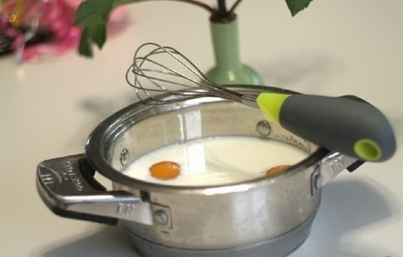 Добре розмішай масу, додай до неї молоко і помісти на вогонь.