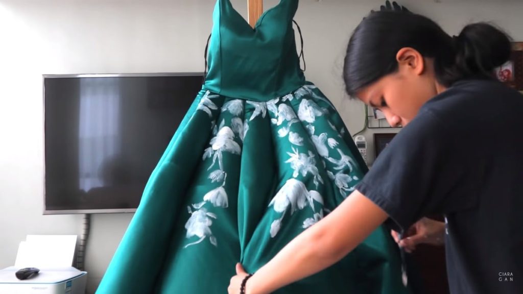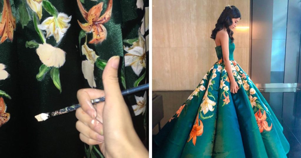 Розмальовуючи плаття, філіппінка зіткнулася з деякими труднощами: знайти манекен для установки наряду не вдалося, тому його довелося замінити звичайним мольбертом.