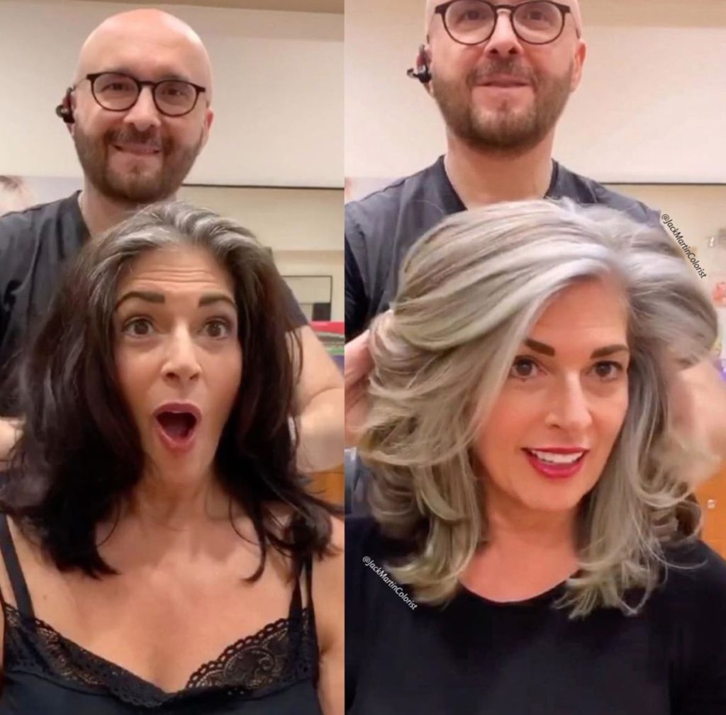 Жінка була в захваті від результату. Мартін опублікував фото її перетворення в Інстаграмі три роки тому, але останнім часом знімок знову стали обговорювати, і не дарма: він — справжній майстер по сивому і срібному волоссю.