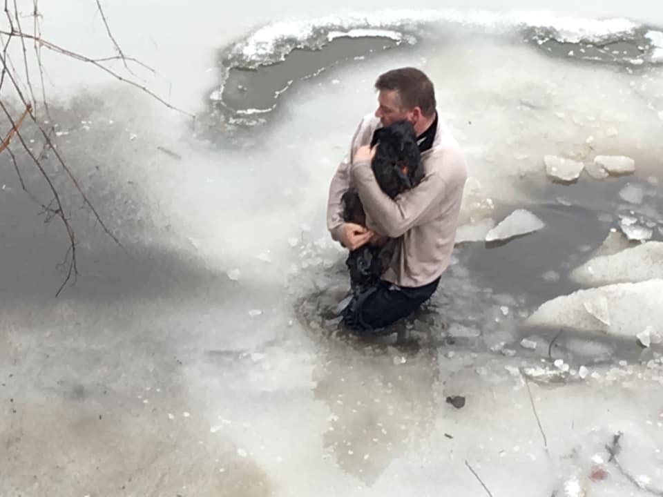 Чоловік стрибнув у крижану воду, щоб врятувати собаку