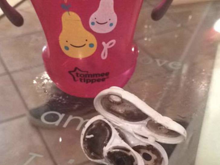 Одного дня батько почув дивних запах, який доносився з іграшок, а саме з чашки. Батьки це сприйняли серйозно і вирішили заглянути під кришку. Відкривши кришку, він виявив під нею сліди цвілі.