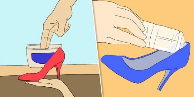 У цьому вам допоможе вазелін. Це дешева альтернатива брендовим засобам для догляду за взуттям. Протріть ним чисті туфлі як слід, приділяючи більше уваги подряпинам і дрібним недолікам.