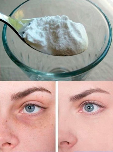 Розмішуємо в склянці гарячого чаю або води 1 ч. л. харчової соди. Змочуємо ватний диск і прикладаємо під очима. Через 10-15 хвилин склад можна змивати. Не забудьте нанести на повіки зволожуючий крем. Содові компреси можна прикладати щодня.