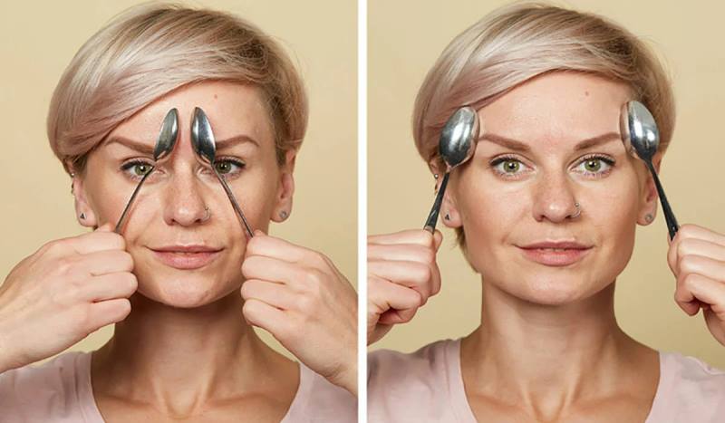 Краса і здоров’я нашої шкіри в основному залежать від правильного кровообігу. Масаж обличчя, який покращує кровотік, лімфовідтік і зменшує затримку води, може мінімізувати появу зморшок і поліпшити тонус вашої шкіри. Ви можете самі зробити собі такий масаж за допомогою ложок.
