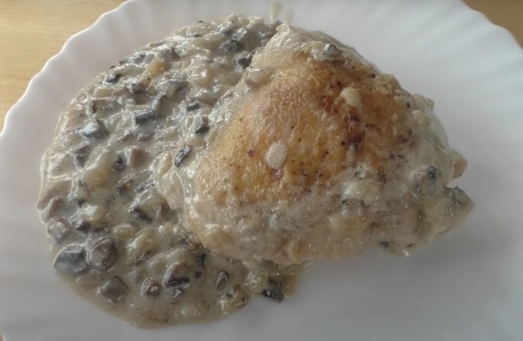 Цікавий і смачний рецепт для любителів смачно поїсти! Готується легко, продукти прості — смажена курка в грибному соусі.