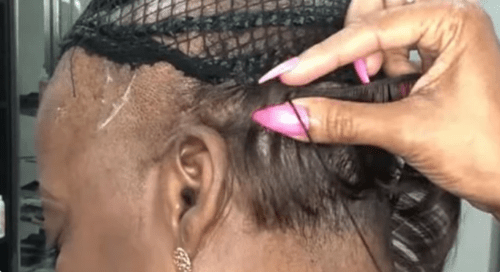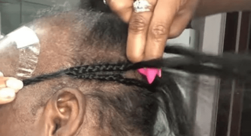 Отже, ось що зробив стиліст. Спочатку він заплів косички з наявного волосся жінки по колу. Щоб приробити каркас.