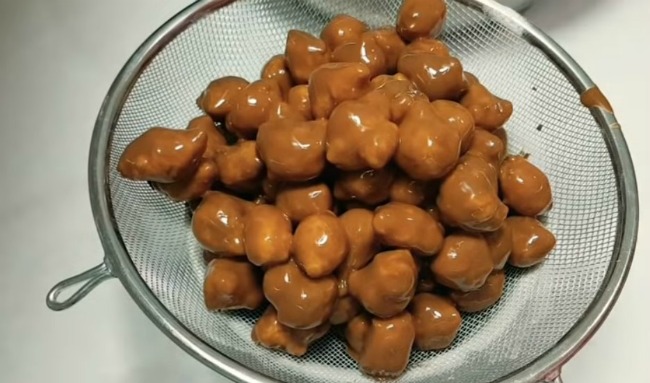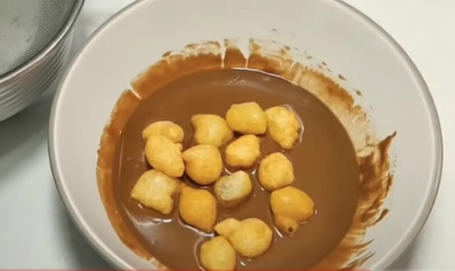Кульки опускаємо в сироп і просочуємо ним, виймаємо.