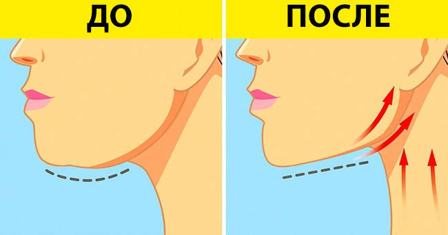 Сядьте вертикально в кріслі, з головою піднятою до стелі. Витягніть губи, щоб зробити риб’яче обличчя і напружте м’язи щік, щелепи і шиї.