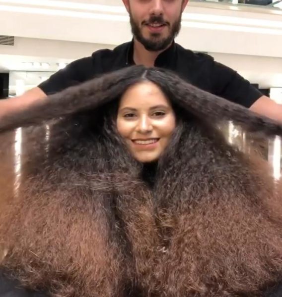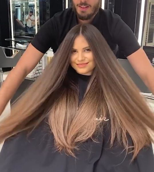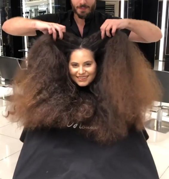 Тому клієнтка, яка звернулася до майстра з копицею пухнастих пасем, попросила зробити їх більш слухняними.