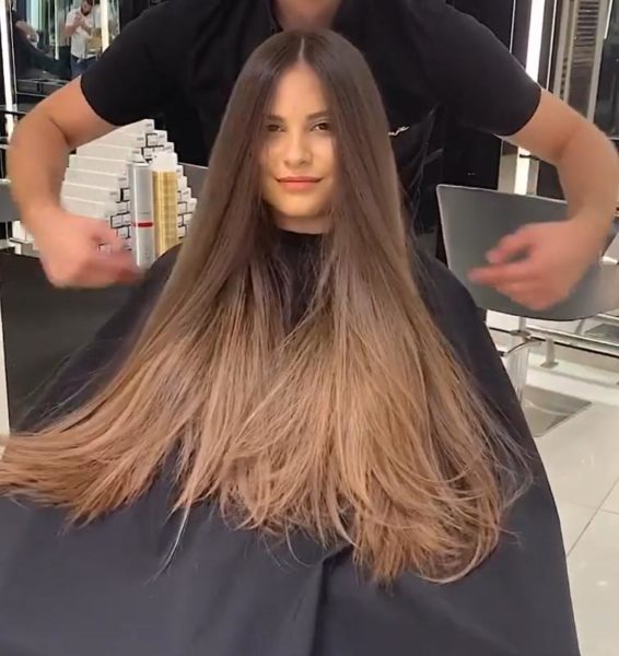 В першу чергу майстер взявся за фарбування. Нічого кардинального, всього лише освітлення кінчиків. Але ця техніка дала неймовірний освіжаючий ефект.