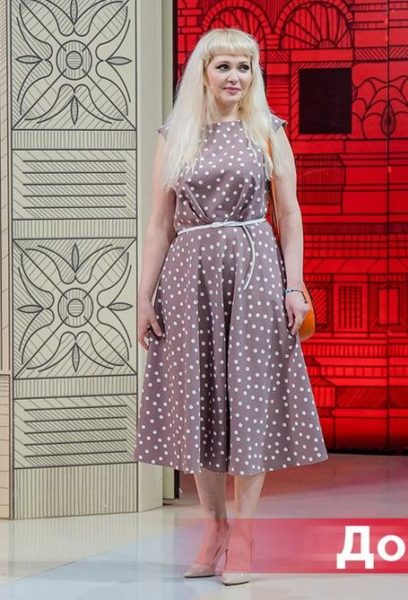 Друге плаття, на яке припав вибір Олени, добре освіжає. Потрібно тільки доповнити його аксесуарами.