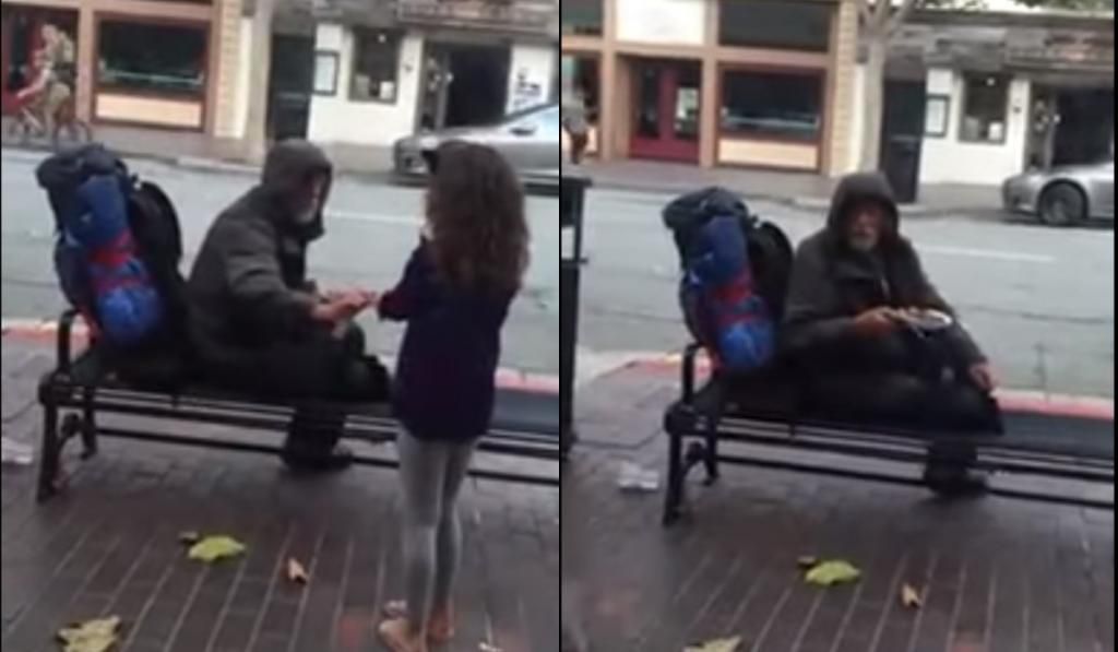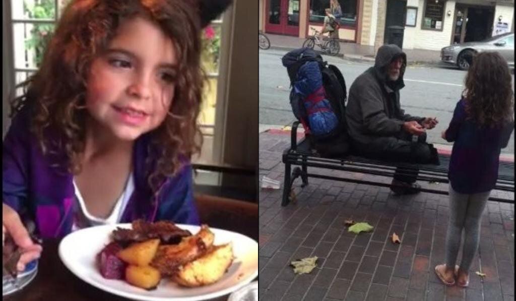 Одного разу маленька дівчинка поділилася своїм обідом з бездомним старим, який сидів на лавці біля ресторану.