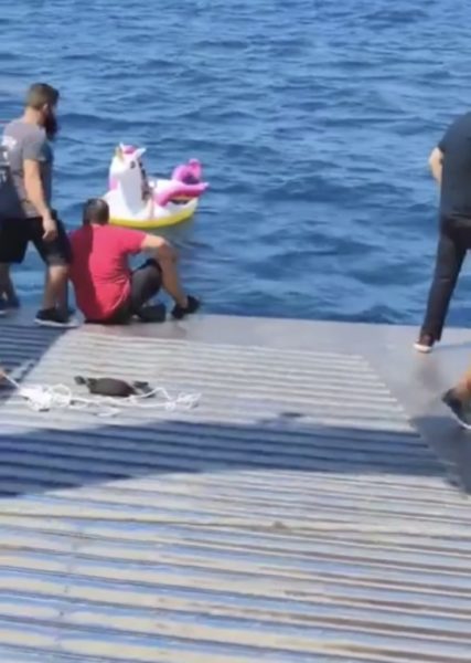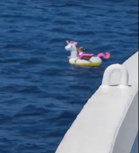 Допомогла зачіпка – великий надувний круг мав форму єдинорога і яскраві кольори, які виділялися на тлі синього моря.