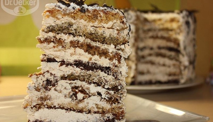 Найкраща випічка, яка ніколи не набридає. Торт складається з маку, кураги, чорносливу із горіхами та родзинками. Інгредієнти розраховані з розрахунком на один корж, а висоту ви можете регулювати так, як вам забажається.