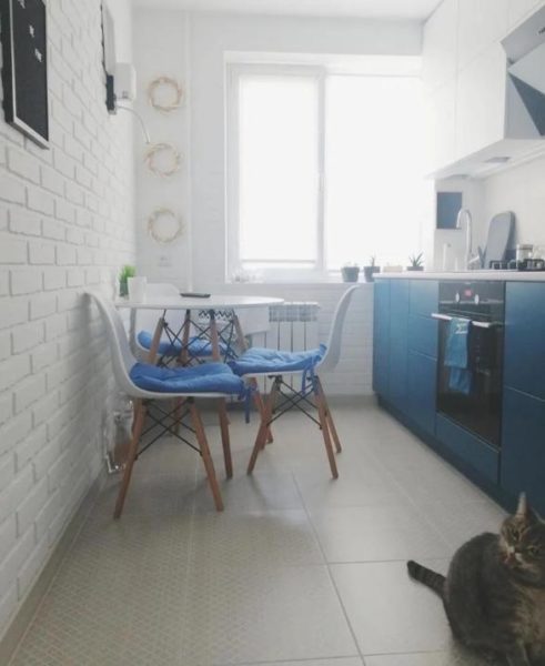 У підсумку в кухні повністю замінили техніку і меблі. В інтер’єрі сформувалися акценти насиченого синього кольору.