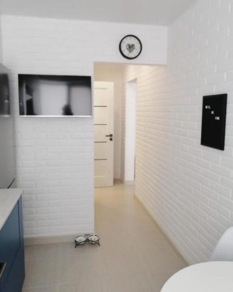 Фотографії “До” показують, що ремонту в квартирі не було давно. Радянська плитка під шпалерами, стара підлога – було вирішено почати саме з неї. Потім вирішили прибрати з маленької кухні гарнітур, поставити замість старих вікон пластикові пакети.