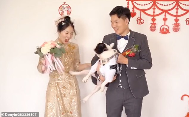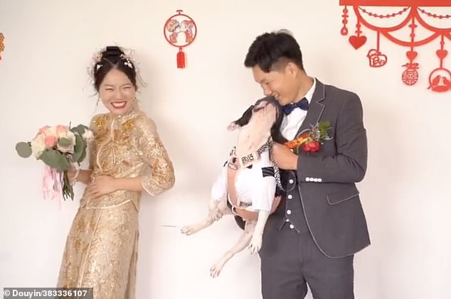 І ніяка це не випадковість, тому що песик відразу поліз цілуватися з нареченим.