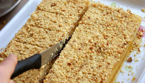 Зверху посипаємо десерт крихтою і залишаємо на кілька годин, щоб коржі гарненько просочилися.