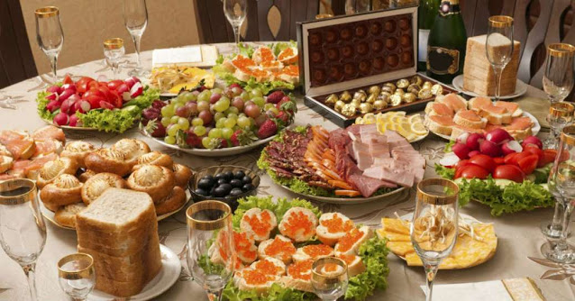 На 4 дорослих людини думаю вистачить. Картопельку зварила, куди ж без неї, скумбрію копчену порізала. Рулет з лаваша, салат овочевий з морепродуктами. На гаряче запекла курку з грибами і овочами, і посмажила свої улюблені рубані котлети з грудки.