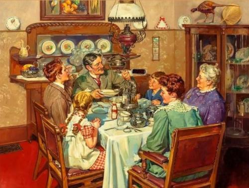 На зображенні зображено родину, яка обідає. Але тут є одна помилка, яку спеціально допустив художник. Вам потрібно зрозуміти, що це за помилка. Для цього будьте гранично уважні і не відволікайтеся на сторонні речі.