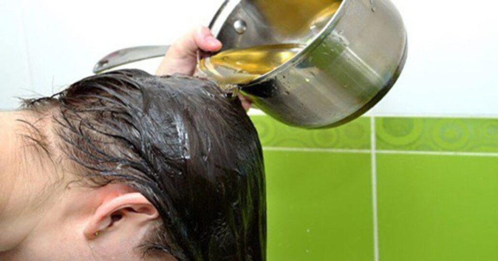 Перелийте чайний настій в тазик і приступайте до процедури. Чисті після душа волосся полоскайте засобом від сивини протягом 15 хвилин. Для цього схиліться на тазиком і, використовуючи кухоль або ківш, поливайте голову, масажуючи шкіру голови. Після цього просушіть голову за допомогою фена і рушники.