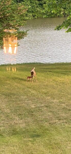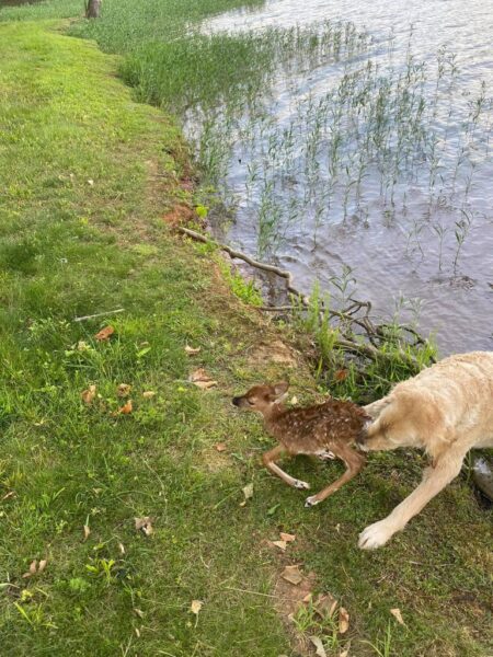Як тварина опинилася в озері, Дорн так і не зрозумів. Але просто чудо, що Харлі його помітив до того, як малюк вибився з сил. Це землі людей, навколо будинки і паркани, так що навряд чи мама-олениха прийшла б йому на допомогу. А ось добрий Харлі – запросто!