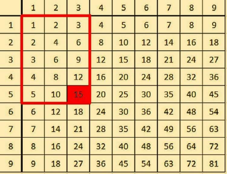 Можливо, ви не знали цього самі, але якщо ткнути пальцем в якесь число в таблиці і провести від нього прямокутник до лівого верхнього кута, то кількість клітинок в прямокутнику дорівнюватиме цього числа.