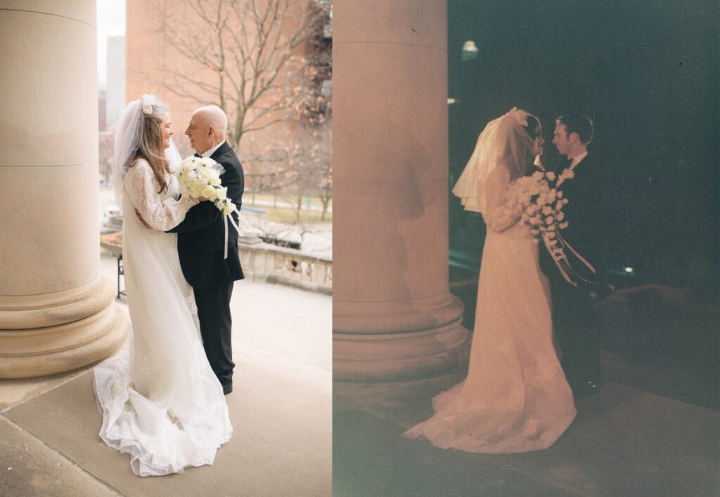 Щоб відтворити весільні фотографії пара вирушила в ту ж церкву, в якій відбулося їхнє одруження. А завдяки професійному фотографу вони в точності повторили і пози, і ракурси старих знімків.