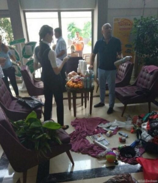 Перед тим як пара повинна була покинути готель, охоронці попросили показати вміст валіз. Все, що вони награбували протягом цього часу, було ретельно розкладено. У пластикових пляшках був налитий Бейліз. Цитрусові фрукти розкладені по пакетах. Зверху накладені халати, тапки, рушники та мотки паперу. Коріння квітів, які російські туристи вирвали в саду, були промочені в воді.
