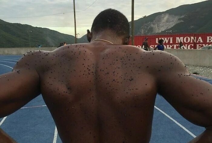 7. Це спина легкоатлета після забігу – на ній нагрітий поліуретан з бігової доріжки.