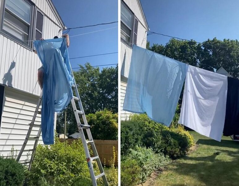 Хлопець встановив сушилку для білизни з боку будинку літньої шпигунки і розвісив по всій довжині на мотузці речі.