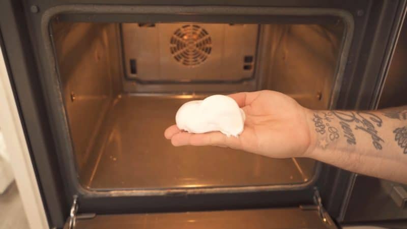 Розподіліть піну рівним шаром по всій поверхні брудної духовки і залиште на 15 хвилин.