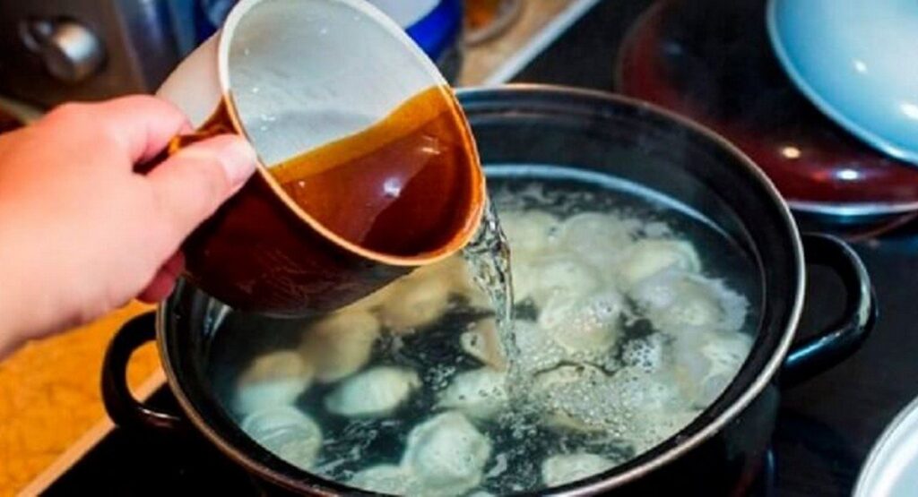 Акуратно помішуючи, щоб пельмені не злиплися, дочекайтеся, поки вони не почнуть спливати. Потім слід додати тонкою цівкою склянку холодної води і довести до кипіння. Проваріть пельмені протягом 4 хвилин. Такий трюк допоможе розкрити смак і зробить тісто більш м’яким.
