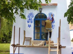 У цій статті хочемо познайомити вас з творчістю однієї талановитої чеської художниці – Анежки Кашпаркової. Нещодавно їй виповнилося 90 років і вона до сих пір продовжує займатися улюбленою справою. Ось уже 40 років жінка розписує будинки рідного села Лоук неймовірним синім орнаментом.