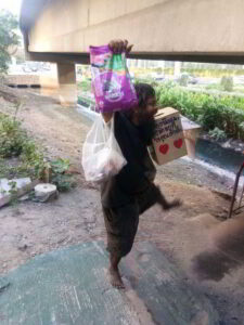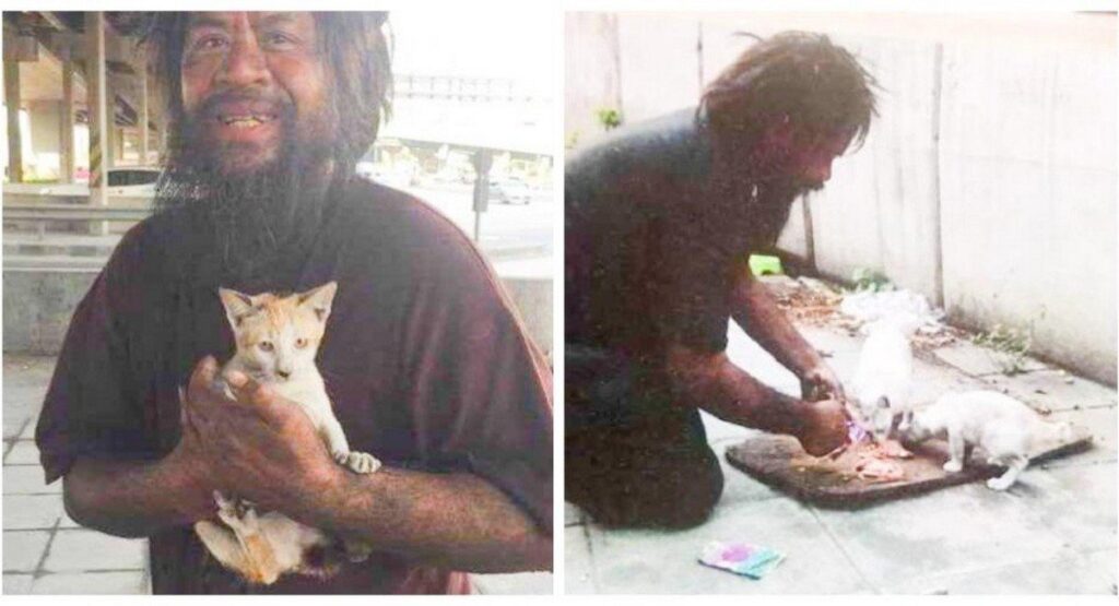 Бездомний чоловік кожен день годує вуличних кішок, при тому, що сам часом голодує