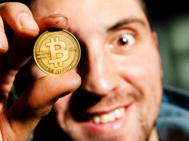 Так, усі говорять зараз про Біткоїни, а вони ось, у нього вже в руках і їх можна помацати, такі цінні та бажані всіма монети!