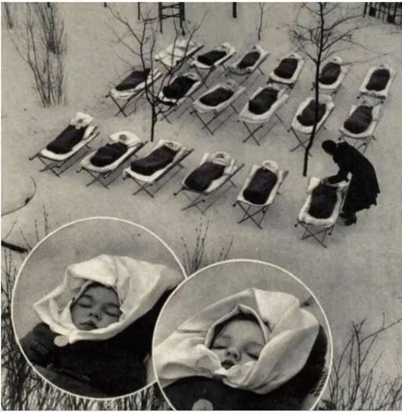 У той час у яслах були манежі, ходунки, брязкальця та пелюшки, сон на вулиці.