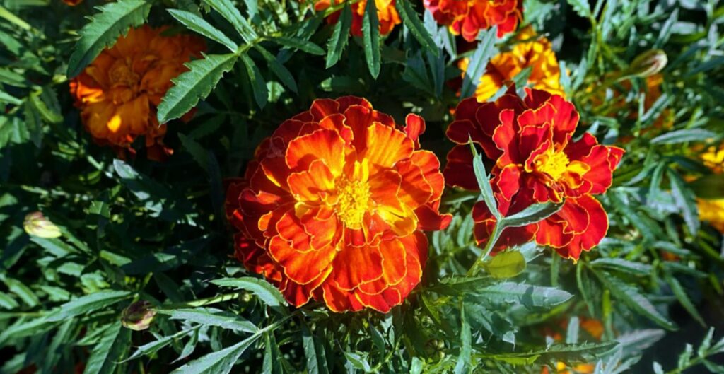 Квітки пофарбовані в теплі тони від світло-жовтих і помаранчевих до червоних і червоно-коричневих – клумби, де ростуть чорнобривці, виглядають «сонячними» навіть у негоду і дарують життєрадісний настрій.
