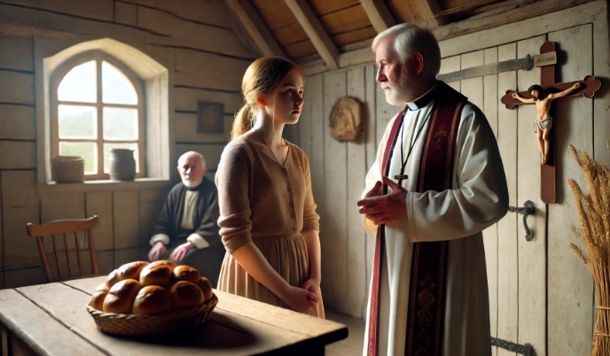Нарешті, вона спекла великий духмяний хліб, принесла його священикові й сказала: