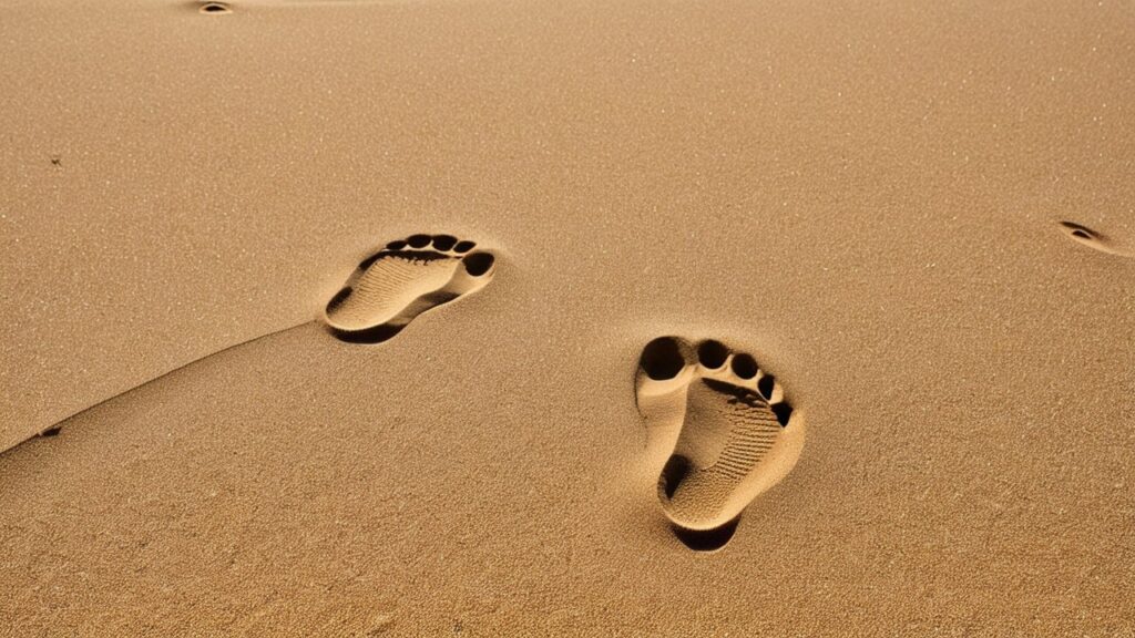 Перед очима промайнули картини з її життя. Після кожного спогаду людина помічала на піску два ряди слідів: один – від її ніг, інший – від ніг Господа.