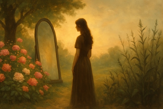 Але мудрець лише відкрив двері та поставив перед нею велике дзеркало.